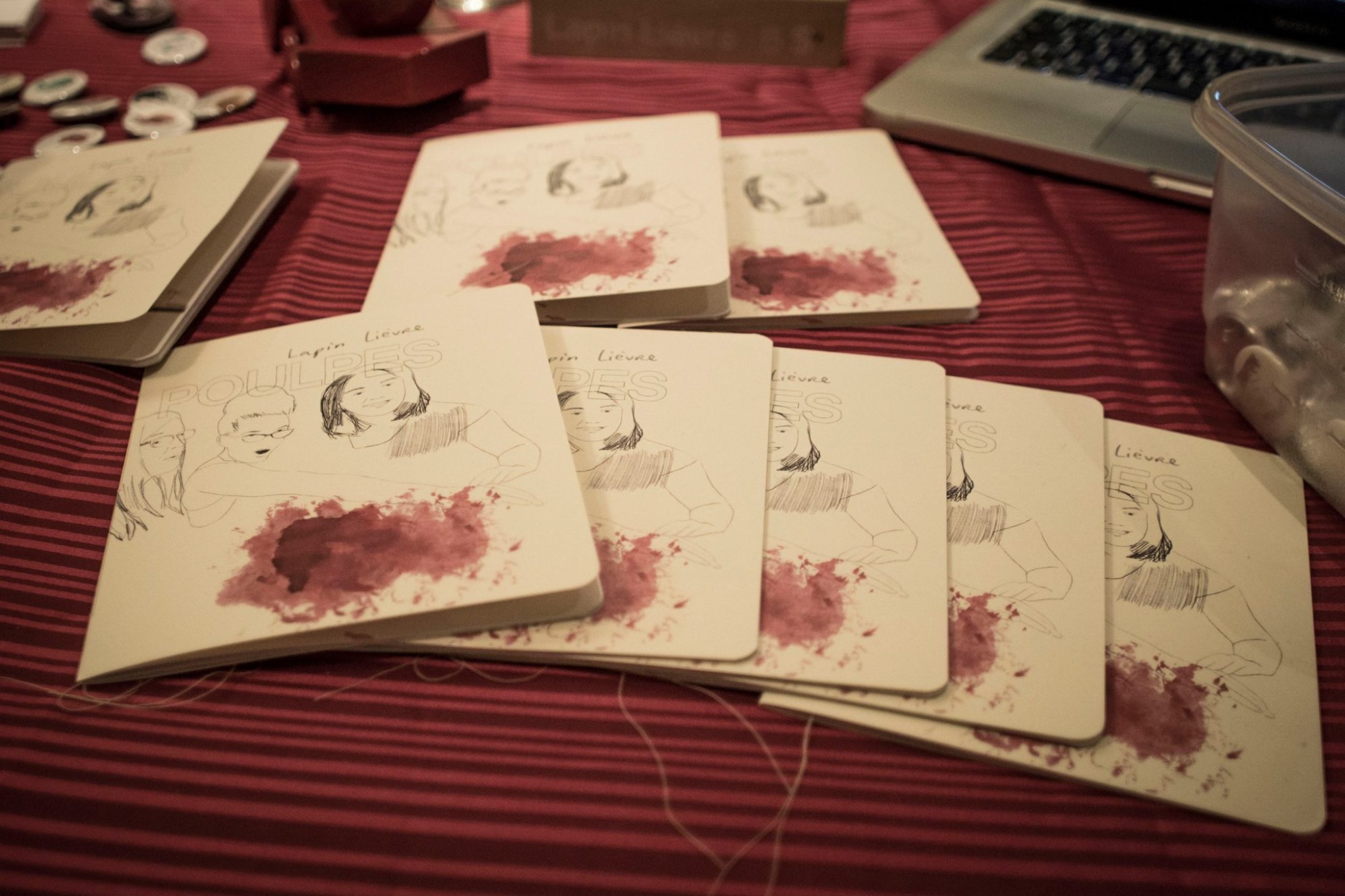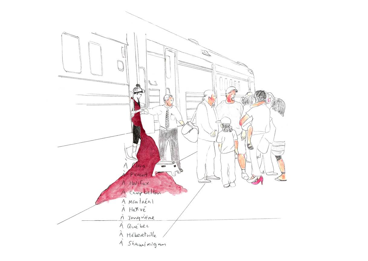 Pour le sixième numéro du fanzine Lapin Lièvre, Magali Baribeau-Marchand a collaboré avec le collectif Les Poulpes afin de livrer un récit aux contours nomades qui relate poétiquement leur projet CONVOI, périple ferroviaire, tentaculaire, performatif et mobile. Voyageuses curieuses et engagées, les Poulpes ont sillonné le Québec, les Maritimes et l’Ontario en train, en disséminant des parcelles d’art sur le territoire, en allant à la rencontre des gens.